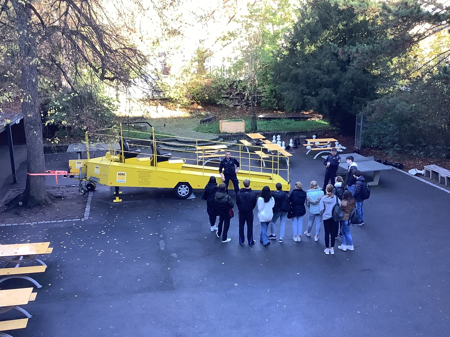 Wir, die K1, hatten heute einen Präventionstag. Wir trafen dabei auf viele Polizisten aus unterschiedlichen Bereichen, wie auch die Verkehrspolizei, da viele von uns zur Zeit ihren Führerschein machen. Sie haben uns viel erzählt und uns in vielen Bereichen aufgeklärt. Wir konnten praktische Erfahrungen sammeln, z.B. durften wir in den Gurtschlitten sitzen oder mit der Rauschbrille einen Parkour ablaufen. Uns wurde beigebracht, wie man anderen helfen kann und in welchen Situationen wir es sogar müssen, um uns strafrechtlich zu schützen. Dieser Tag hat uns alle in vielen Dingen aufgeklärt und war für jeden eine Bereicherung.
