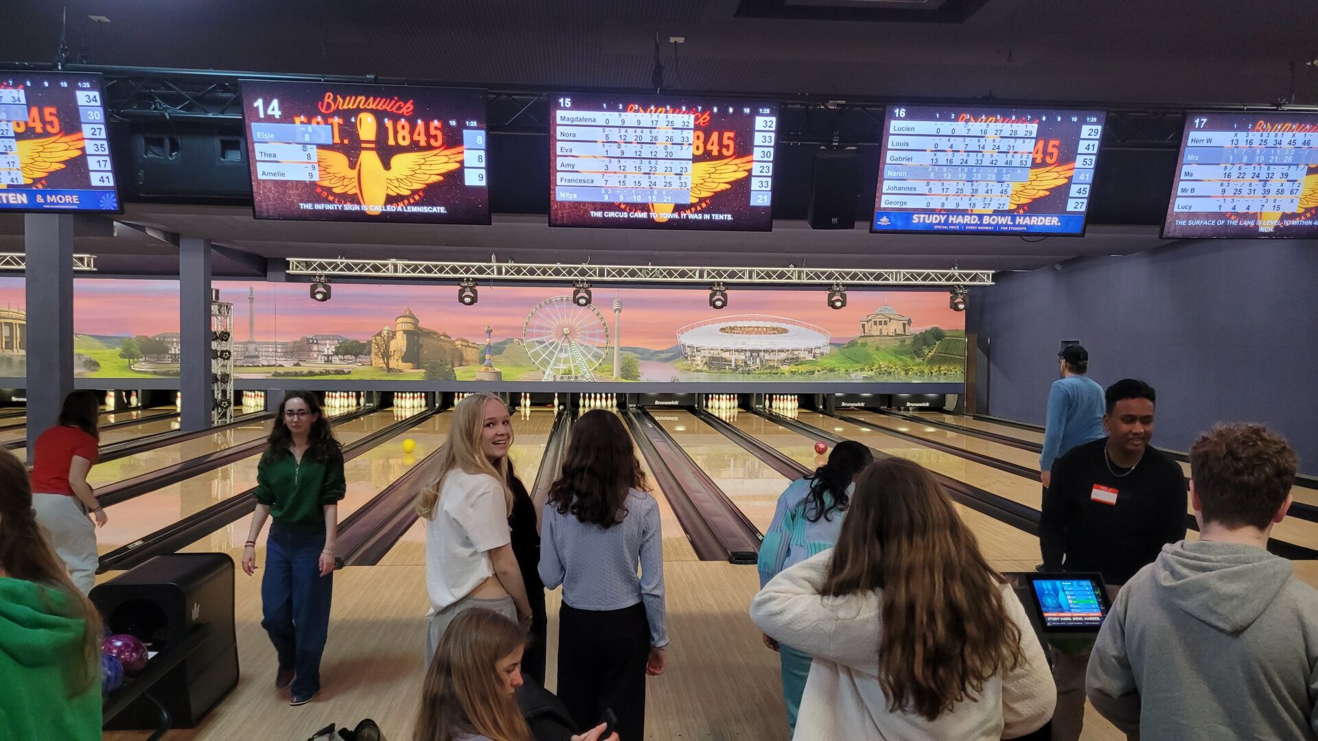 When the English students arrived in Stuttgart, the atmosphere was a bit awkward at first, but over the course of the exchange this quickly changed. A good icebreaker was the bowling event on Wednesday after school, when the German students had been in class beforehand and the English students had taken a discovery tour of Stuttgart.