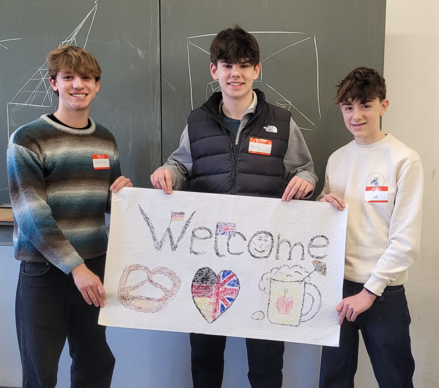 Als die englischen Schüler in Stuttgart ankamen, war die Stimmung zuerst etwas angespannt, aber im Laufe des Austauschs hat sich das schnell geändert. Ein guter Eisbrecher war das Bowlingevent am Mittwoch nach der Schule, als zuvor die Deutschen im Unterricht waren und die Engländer eine Stadtrallye durch Stuttgart gemacht haben. Am nächsten Tag waren die Engländer einen Tag in Heidelberg und haben sich die tolle Altstadt und das Schloss angeschaut. Abends haben sich dann viele Deutsche und Engländer zusammengetan und sind zum Fernsehturm gegangen. Danach haben dann die Engländer den typischen Döner probiert, der mit in das Programm musste. Am Freitag war der letzte Schultag vor den Osterferien für die Deutschen und die Engländer haben sich das Mercedes-Benz-Museum angeschaut und sind auch in die Wilhelma gegangen, wo sie viel Spaß hatten. Das Wochenende wurde dann von den Familien selber gestaltet, wobei sich manche zusammengeschlossen haben und etwas miteinander gemacht haben. Beendet wurde das Programm dann mit einem aufregenden Tag im Europa Park am Montag in den Osterferien. Es hat allen gut gefallen, trotz der Wetterumschwünge zwischen Regen, Sonne und etwas Hagel. Danach hieß es aber Abschied nehmen am Hauptbahnhof, weil die Briten noch nach München zu ihrem Flug fahren mussten.